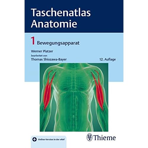 Der Wissensexpress – Taschenatlas Anatomie Bewegungsapparat. Dieser 3-bändige Anatomie-Klassiker bietet dir einen anschaulichen Überblick über den Aufbau des menschlichen Körpers. Das bewährte Konzept der Taschenatlanten aus kombinierter Text- und Bildseite ist ideal zum Lernen, zur Prüfungsvorbereitung und auch zum Nachschlagen während des klinischen Studienabschnitts geeignet. Konkrete klinische Hinweise im Text verknüpfen das Gelernte mit der aktuellen Praxis. Band 1: Bewegungsapparat - Die allgemeine Anatomie liefert dir einen Überblick über Gewebe-, Skelett- und Muskellehre. - Die systematische Anatomie des Bewegungsapparates beschreibt anschaulich Aufbau, Funktion und Zusammenspiel von Knochen, Gelenken, Bändern und Muskulatur. - Die Topografie der peripheren Leitungsbahnen des Bewegungsapparates und des Stammes unterstützt dich bei der räumlichen Zuordnung von Gefäßen und Nerven. - Neben der aktuellen lateinischen Nomenklatur werden weitere gebräuchliche Bezeichnungen genannt. In Übersichten am Ende jedes Abschnitts findest du die deutschen Entsprechungen der lateinischen Begriffe. In der 12., überarb. Auflage gibt es jetzt zusätzlich einen eRef-Zugangscode.Taschenbuch=488 Seiten. Verlag=Thieme; Auflage: 12. aktualisierte (22. August 2018). Sprache=Deutsch. ISBN-10=3132422215. ISBN-13=978-3132422216. Durchschnittliche Kundenbewertung=Schreiben Sie die erste Bewertung. Amazon Bestseller-RangHistologieEmbryologieAtlanten=Nr. 531.765 in Bücher (Siehe Top 100 in Bücher) .zg_hrsr { margin: 0; padding: 0; list-style-type: none; } .zg_hrsr_item { margin: 0 0 0 10px; } .zg_hrsr_rank { display: inline-block; width: 80px; text-align: right; } Nr. 75 in Bücher > Fachbücher > Medizin > Grundlagen > Nr. 75 in Bücher > Fachbücher > Medizin > Grundlagen > Nr. 170 in Bücher > Fachbücher > Medizin > Wörterbücher & Nachschlagewerke >.